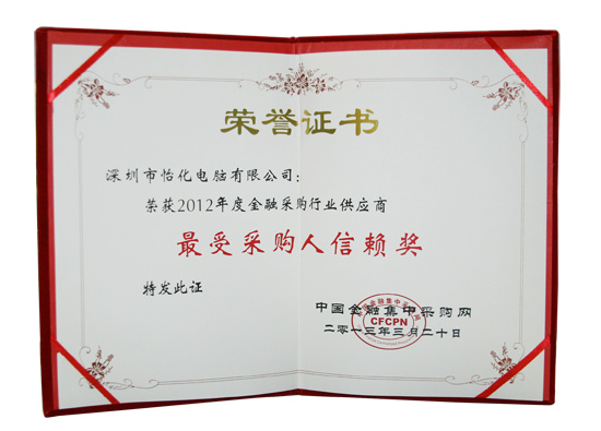 榮獲“2012年度最受金融行業采購人信賴獎”